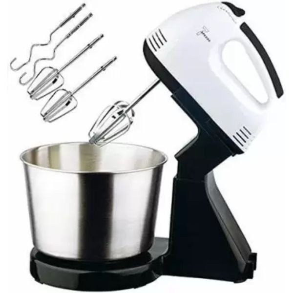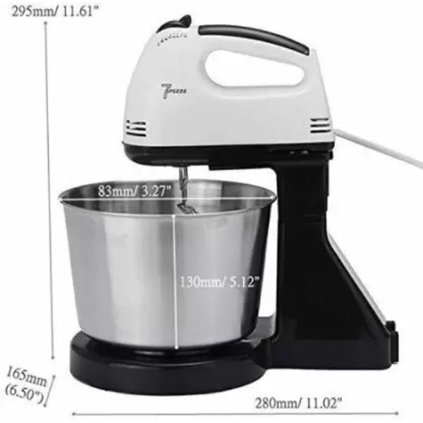 7-Speed Electric Food Mixer 2 in 1 Hand Mixer Featured with 2 different attachments( dough hooks and beaters ), It is perfectly designed for you to do all types of food mixing, including creaming, mixing, beating, kneadin, mix eggs or cream, provide you with a comfortable and safe user experience. [7-Speeds Switch]?With 7-speed electric egg beater, you are easy and free to make foods what you want.With multi-directional cold and hot air convection heat dissipation. The 100W hand mixer is made of stainless steel and premium plastic, lightweight,You can enjoy your works. [Large Capacity Bowl]?Designed with a large Plastic bowl with a maximum capacity, it perfectly meets all your kitchen needs. You can make full use of it when family or friends meetings come around. The bowl made of stainless steel is easy to clean. A splash guard help you add ingredients without making a mess. [High Quality]: The 100W hand mixer is made of stainless steel and premium plastic, lightweight, and a stainless bowl, Easy to use and powerful enough for most kitchen tasks. Let you quickly mix,whip egg whites blend, cake batter,whip cream,cookie dough,and more. [Multi Purpose] : Stand mixer is your perfect kitchen accessory for frosting, meringue, creamy dressings, doughs, baked goods and more.7-Speed Electric Food Mixer 2 in 1 Hand Mixer