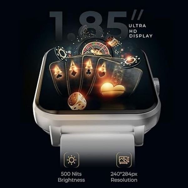 BeatXP Marv Ace Bluetooth Smart Watch-1.85” Large Smartwatch with 500 Nits: Indulge in the ultimate comfort and opulence with our 1.85″ Ultra HD Display smart watch that boasts an and a lightning-fast 60Hz Refresh rate, keeping you effortlessly connected in the most fashionable way possible.