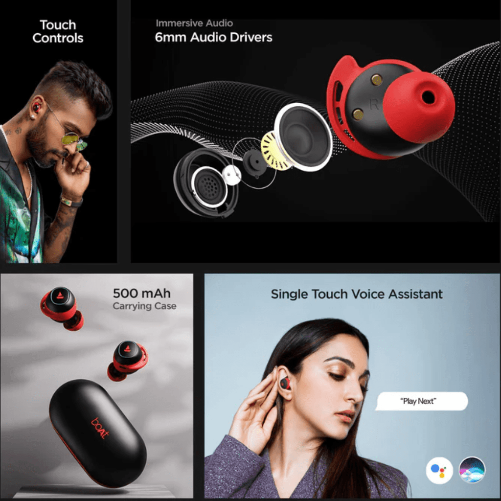 - Instant Connect- It is equipped with IWP (Insta Wake N’ Pair) Technology that powers on the TWS earbuds and puts them into connection mode as soon as one opens the lid of the carry case