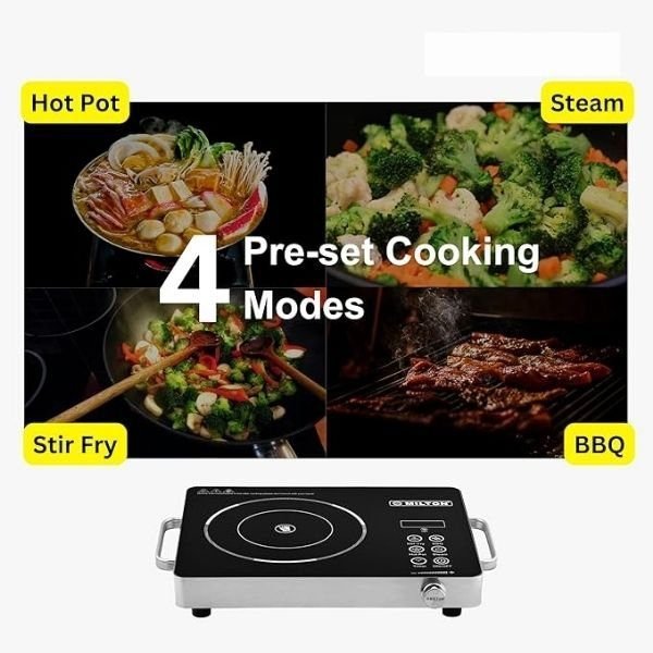 - * 4 Pre Set Menu : It comes with 4 pre-set menu options – Stri Fry, BBQ, Hot Pot & Steam. Enjoy Seamless cooking with set wattage for easy.