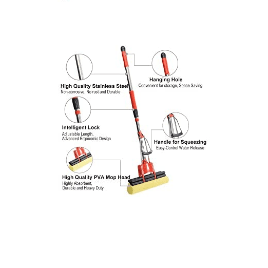 -Premium polyvinyl sponge mop head that is highly absorbent with a high tensile strength and is resistant to harsh chemicals for effective mopping.