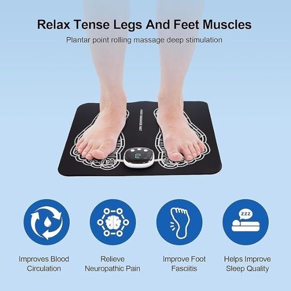 Foot Massage Machine Mat with 8 Mode/19 Intensity for Legs Foldable and Portable: Lightweight, foldable and easy to carry. No matter where you are, you can enjoy some relaxing treatments with this foot massage mat. Great for travel. 2. Manual Switch: This massage mat comes with manual switch, you can easily massage feet when watching TV at home. After a tiring day, you can sit on the sofa and watch TV while enjoying a foot massage. 3. 8 Modes 19 Gears: The foot massage pad has 19 gears in A to F 8 modes. You can choose different gears for massage according to your needs. 4. Reliable Material: The foot massager mat is made of thick and soft leather to ensure comfortable feel, which is easy to clean and just wipe with a cloth. 5. Widely Applicable: The foot massage mat are designed for workers who sit and stand for long time. Soft and comfortable foot pads can reduce tension and relieve muscle pain in the feet.Foot Massage Machine Mat with 8 Mode/19 Intensity for Legs