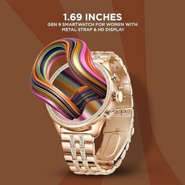 GEN 9 Smart Watch for Women with Metal Strap & HD Display experience the perfect blend of style and functionality with this hybrid smartwatch, designed to effortlessly track your fitness journey. Featuring a sleek stainless steel bracelet and a rose gold case, this timepiece exudes elegance while seamlessly integrating cutting-edge technology. The built-in heart rate monitor accurately monitors your heart rate, allowing you to optimise your workouts and achieve your fitness goals. With its fitness tracking capabilities, you can monitor your steps, distance, calories burned, and more, ensuring you stay motivated and on track. This smartwatch is water-resistant up to 50 metres (164 feet), making it an ideal companion for your active lifestyle. Enjoy the convenience of receiving notifications for calls, messages, and app alerts directly on your wrist, keeping you connected without the need to constantly check your phone. Crafted with premium materials and a user-friendly interface, this hybrid smartwatch combines fashion and functionality, making it the perfect accessory for both women and men who value an active and stylish lifestyle GEN 9 Smart Watch for Women with Metal Strap & HD Display.
