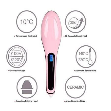 Item features: For thick hair, select higher temperature(210-230), for normal textured hair,select moderate temperature(190-210), for delicate, fine hair,you can select temperature( 170-200) selecting low temperature will slightly slower the process of making hair style. Press the power button for 3 seconds, and press for 3 seconds to off. Straighten iron comb enables doing your hair with 0 burns and 0 harm. All the ladies will be crazy for its advantage: Lcd screen display . 360 degree rotatable wire.
