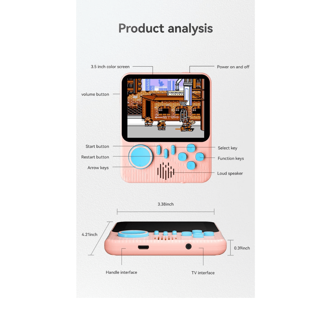 Despite its compact size, the device features a high-resolution HD screen that delivers bright, sharp images. The vibrant display ensures that classic pixel-based characters, colorful backgrounds, and fast-paced animations are easy to follow. The screen size strikes the perfect balance: it’s big enough for immersive gameplay, yet small enough to keep the unit portable and lightweight.