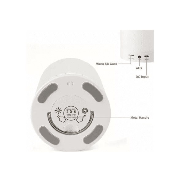 Multifunction Wireless Music Speakers-Smart Touch LED Mood Lamp,Wireless Music Player,Hands-Free Speakerphone,TF Card Supports, on the bottom of this lamp,there is a metal hook to hang like a lantern,handle to hang up,Portable Fairly lightweight is perfect to hang while camping; Night light Bluetooth Speaker-Compatible with the bluetooth devices and quality speaker driver had been specially selected to provide the most soothing audio experience. Night Light also supports Micro SD card,3. 5mm audio cable,audio input. Use the cable provided for even longer audio playback time,You can play your favorite music by TF card playing and Bluetooth playing; COLOR CHANGING MODE-3 Level Brightness Warm Light mode by tapping the speaker mesh on the top,Dim-Intermediate-Bright. If you tap the speaker mesh with a little longer time,the dimmable LED lamp comes with 7 color changing light mode. Then you tap the speaker mesh,it will change light quickly. This only happens when you connect the bluetooth and play a music; Hand-Free Calling Bluetooth Speakers with Lights-It has a Built in Mic which supports excellent handsfree capability because of the noise cancellation software; Home Music System with Touch Lamp-Long Lasting Power. Use LED lamp Speaker you can Enjoy the warm light and wonderful music,while you are in reading,doing yoga,studio,romantic candle dinner,office camping indoor,also you can take it attend a Party,on picnic,Wild camping because the hook design at bottom makes you easy to carry going to all outdoor activities. It is also use as Night light,and play it.