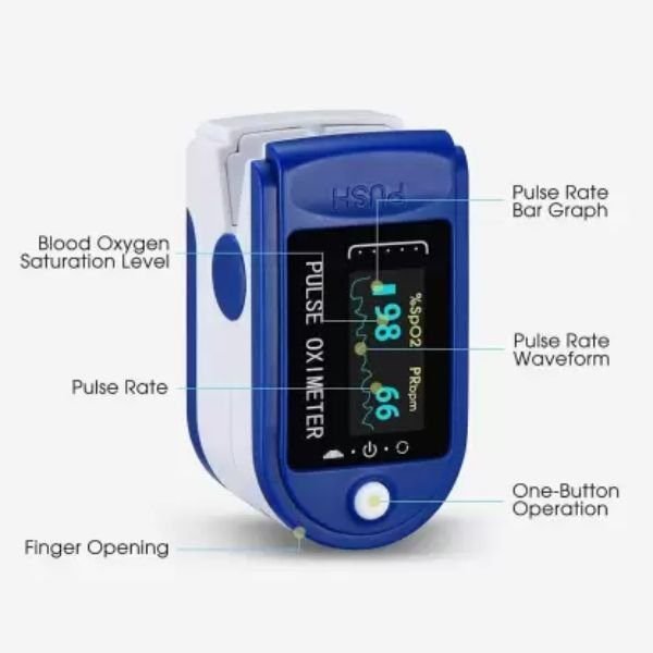 Measure your blood-oxygen levels & heart beat in seconds! Oriley Pulse Oximeter registers a constant reading in several seconds (10sec. for the most accuracy) and is able to provide quick information regarding your blood oxygen levels, heart rate and waveform. Getting a reading is simple: Place finger in device and press power button. After scanning, two reading will be displayed for SPO2 (blood oxygen saturation) level & pulse rate at their marked positions. Specifications: Display Format: 2-color OLED Display SpO2 Range: 0%-100% and Accuracy: ±2% SpO2 Resolution: ±1% Pulse Rate Range: 30bpm-250bpm and Accuracy: ±2bpm Pulse Wave Display: Bar-graph and Waveform Power Requirements: 2×1.5V AAA battery (rechargeable battery also supports) Dimension (in cm): 57 (L) x 31 (W) x 32 (H) Weight: 50g Note: AAA batteries are not included in the package.
