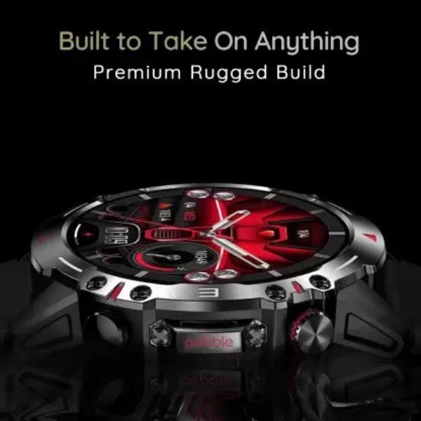 Pebble Cosmos Quest Smart Watch Amoled Display, 410mAh,Introducing the Pebble Cosmos Quest 1.43″ AMOLED Outdoor Smartwatch, a true marvel of technology and design. With its infinite completely bezel-less always-on display, you’ll experience vivid colors and crisp visuals that enhance your every glance. Stay effortlessly connected with BT Calling, enabling you to make and receive calls directly from your wrist. The 410mAh battery ensures long-lasting performance, minimizing the need for frequent charging and keeping you going throughout your day. The health suite feature empowers you to monitor your well-being, keeping track of vital metrics such as heart rate and sleep patterns, all with the convenience of your smartwatch. For the fitness enthusiasts, the Pebble smartwatch offers multiple sports modes, allowing you to track and analyze your workouts, whether you’re running, cycling, or engaging in other activities. Its rugged build ensures durability, making it the perfect companion for all your adventures. Additionally, the smart calculator feature lets you handle quick calculations on the fly, while the alarm and notification function keeps you organized and punctual by setting reminders and delivering alerts for calls, messages, and apps. With the Pebble 1.43″ AMOLED Smartwatch, style meets functionality, offering you a seamless and user-friendly interface. Elevate your tech-savvy lifestyle and embrace the future of wearable technology with this remarkable timepiece on your wrist. Experience the perfect blend of innovation and convenience with Pebble’s latest creation.