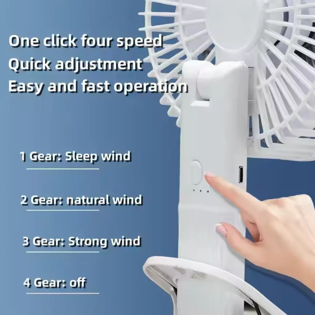 Don’t let its size fool you. This mini fan features high-performance motor technology that delivers a surprisingly strong breeze. With adjustable speed settings—typically low, medium, and high—you can choose the level of airflow that suits your needs.