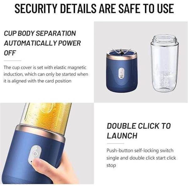 LARGE BATTERY CAPACITY:Â Featuring a built-in 1200mAh lithium battery, this rechargeable juicer cup offers up to 10-20 cups of juice on a single charge, ideal for on-the-go use.