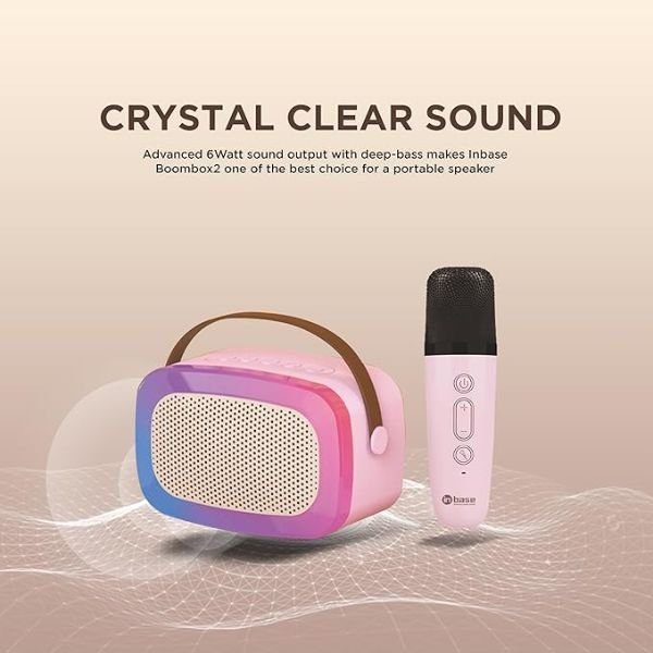 Portable Wireless Bluetooth Speaker with Wireless Karaoke Mic Portable Wireless Bluetooth Speaker with Wireless Karaoke Mic. Experience versatile entertainment with 3 Voice Modes, perfect for music, announcements, teaching, or singing practice. Enjoy up to 6 hours of playtime, making it an ideal companion for various occasions. Elevate your audio experience with this compact and powerful speaker, perfect for indoor and outdoor use. Enhance your entertainment and communication with the Inbase Boombox today!