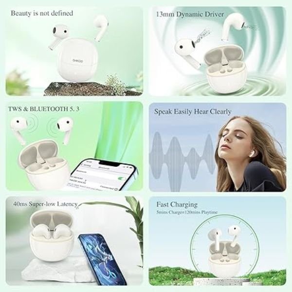 SHKOD Bluetooth Wireless Earbuds ENC Noise 25 Hr Backup