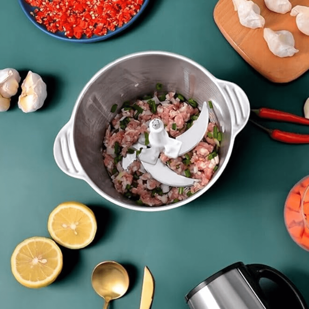 Elevate your kitchen game with the Stainless Steel Electric Meat Grinder and Food Chopper, a powerful, multifunctional appliance designed to make meal preparation faster, easier, and more efficient. With a robust 300W motor, large 3-liter stainless steel bowl, and versatile blade system, this food processor is ideal for grinding meat, chopping vegetables, blending fruits, crushing nuts, and more.