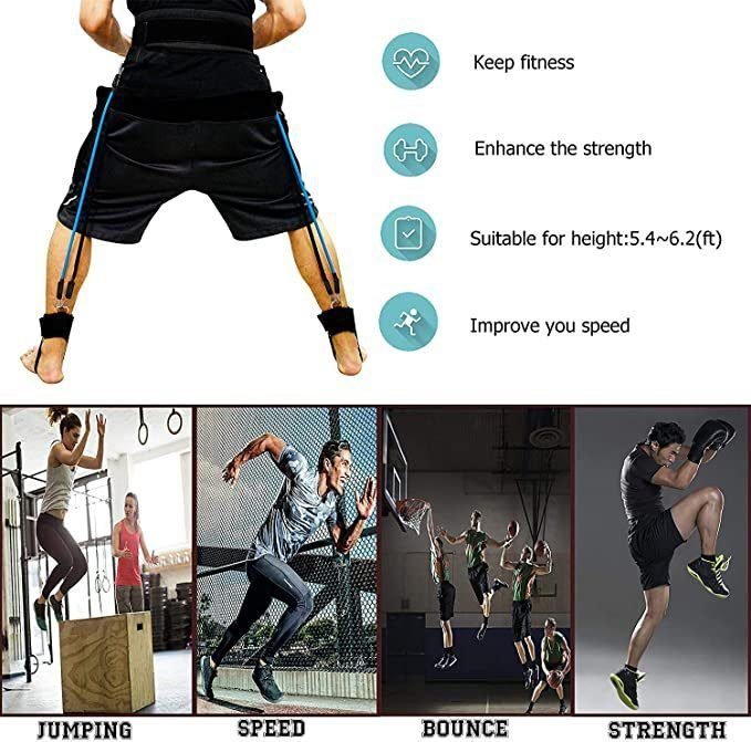 - Cables are approximately 14inches long when clipped into the Belt & Ankle Straps and can be stretched 3 times their length during explosive movements.