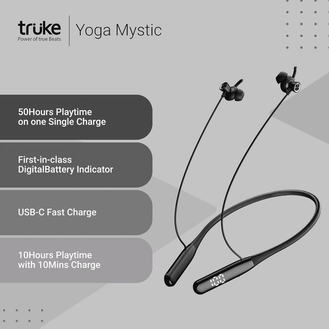 Wireless in Ear Earphones with mic, 50H of Playtime, Digital Display, ENC, Silicon Design, USB-C Fast Charge.