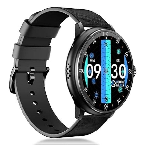Introducing the Young Gear Mercury Smartwatch, a sleek and sophisticated companion designed to elevate your lifestyle. With its round dial and vibrant 1.39-inch Full AMOLED screen, this smartwatch offers a stunning visual experience that’s both stylish and functional. Stay connected for longer with the impressive 3-4 days of battery life, ensuring that you can rely on your smartwatch throughout your busy schedule. Plus, with IP67 water resistance, you can wear it with confidence in any weather condition or during your workout sessions. Experience the convenience of Bluetooth calling directly from your wrist, allowing you to stay connected without ever reaching for your phone. With 150+ watch faces to choose from, you can customize your smartwatch to suit your mood and style effortlessly. Enhance your day-to-day activities with built-in AI voice assistant, providing you with hands-free control and access to information right at your fingertips. Additionally, take charge of your well-being with advanced female health tracking features, empowering you to monitor and manage your health with ease. Experience the perfect blend of style and functionality with the YoungGear Mercury Smartwatch – the ultimate accessory for the modern individual. Elevate your lifestyle and unlock endless possibilities with this exceptional wearable technology.YOUNG GEAR Mercury Bluetooth Smartwatch with Round Dial